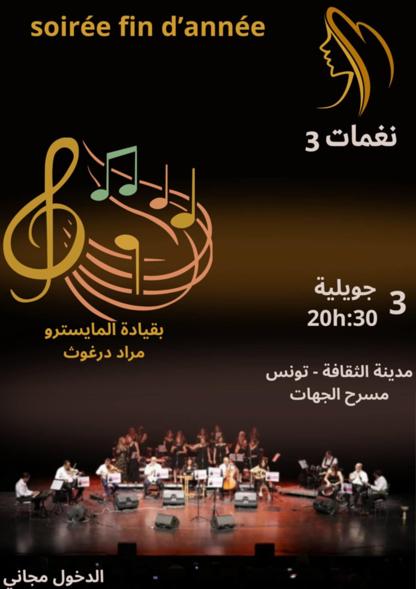 تحتضن مدينة الثقافة الشاذلي القليبي سهرة فنية استثنائية بعنوان “نغمات 3″، وذلك مساء الخميس 3 جويلية 2025 بداية من الساعة الثامنة والنصف ليلاً في مسرح الجهات.